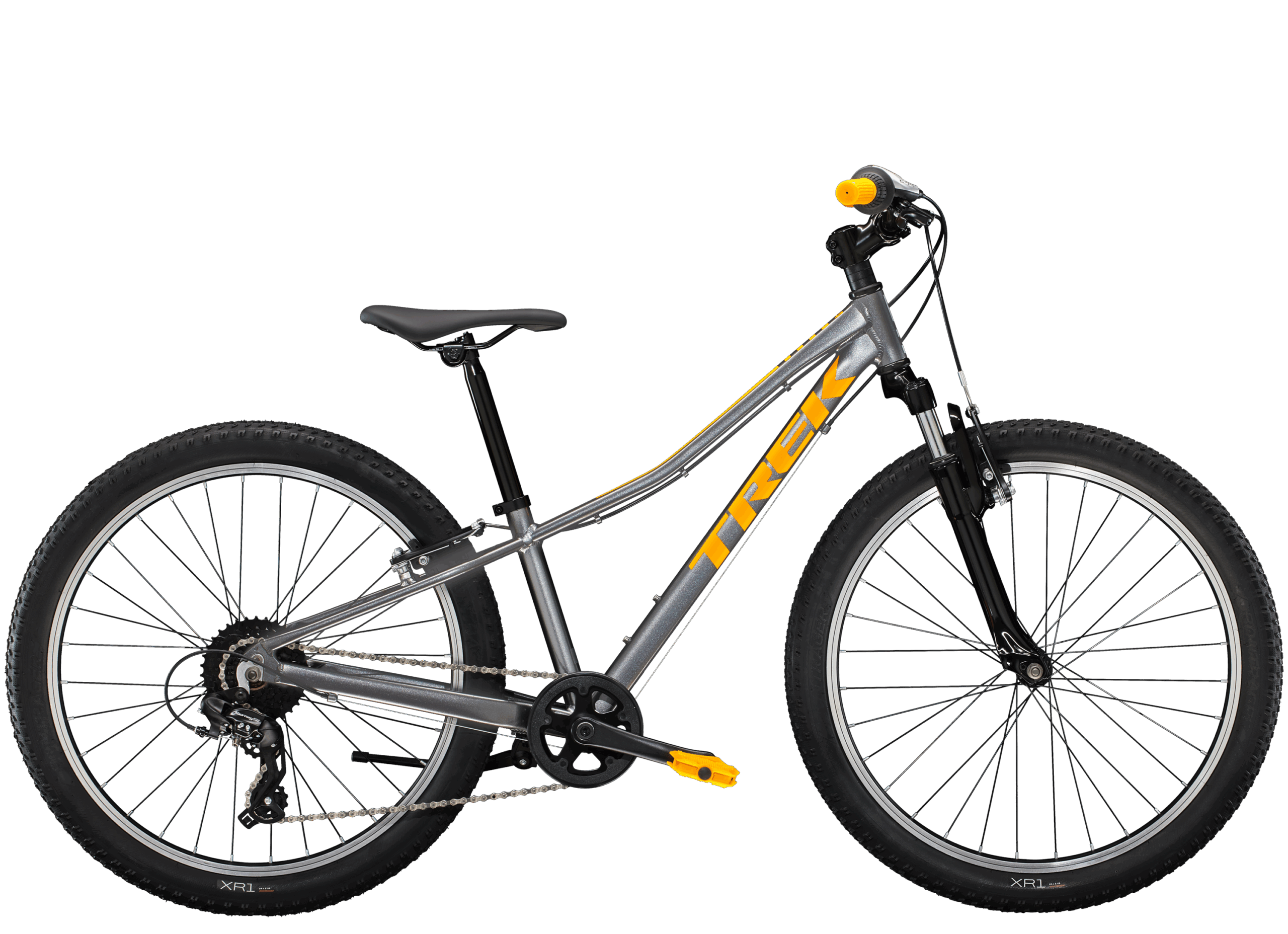 La Precaliber 24 de 8 velocidades y suspensión es versátil y fue construida para niños aventureros que adoran salir del pavimento para andar por la tierra. Cuenta con un cuadro de aluminio resistente pero ligero, una tijera de suspensión rendidora y una transmisión de 8 velocidades ideal para correr carreras de la escuela a casa, pasar volando entre los bosques y rodar sobre senderos y caminos con la familia. Para niños de 8 a 12 años, entre 51 y 59˝ de estatura.